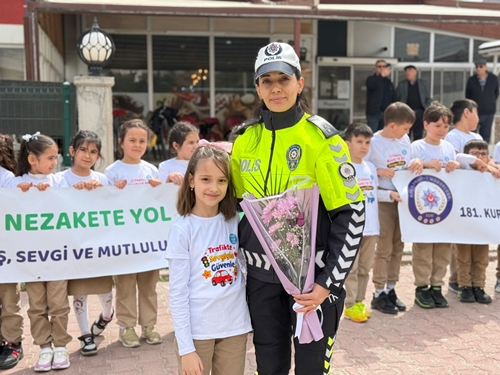 Konya’da, Şerife Akkanat İlkokulu öğrencileri 10 Nisan Türk Polis Teşkilatı’nın 181. Kuruluş Yıl Dönümü ve Polis Haftası dolayısıyla sürücülerde trafik bilincinin oluşturulması amacıyla “Öfkeye Fren, Nezakete Yol Ver” etkinliğini gerçekleştirdi.