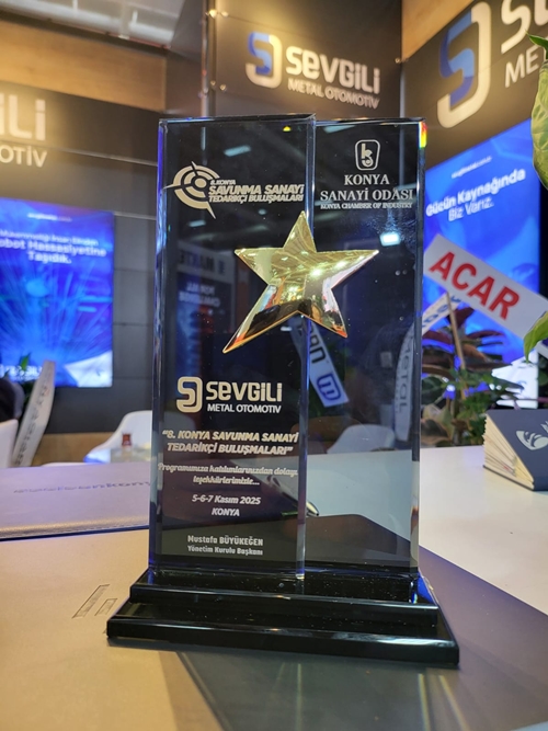 Konya TÜYAP Fuar Merkezi’nde 5–7 Kasım tarihleri arasında gerçekleştirilen 8. Konya Savunma Sanayi Tedarikçi Buluşmaları kapsamında, savunma sanayine yaptığı katkılardan dolayı Sevgili Metal Otomotiv Üretim Müdürü Fatih Tırpancı’ya plaket takdim edildi.