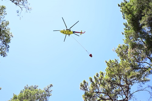 İki yangın söndürme helikopterinin de müdahale ettiği yangın kısa sürede kontrol altına alındı. Yangında soğutma çalışmalarının devam ettiği belirtildi.