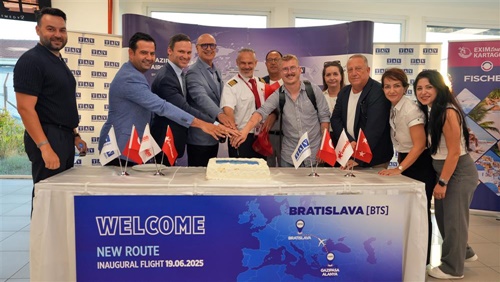 Slovakya’nın başkenti Bratislava’dan Gazipaşa-Alanya Havalimanı’na Dertur Gruba ait olan Exim Kartago Tours Fischer Tur Operatörü ve Corendon Havayolları iş birliği ile ilk uçuş gerçekleşti. 178 yolcu, su takı seremonisi ve karanfillerle karşılandı.